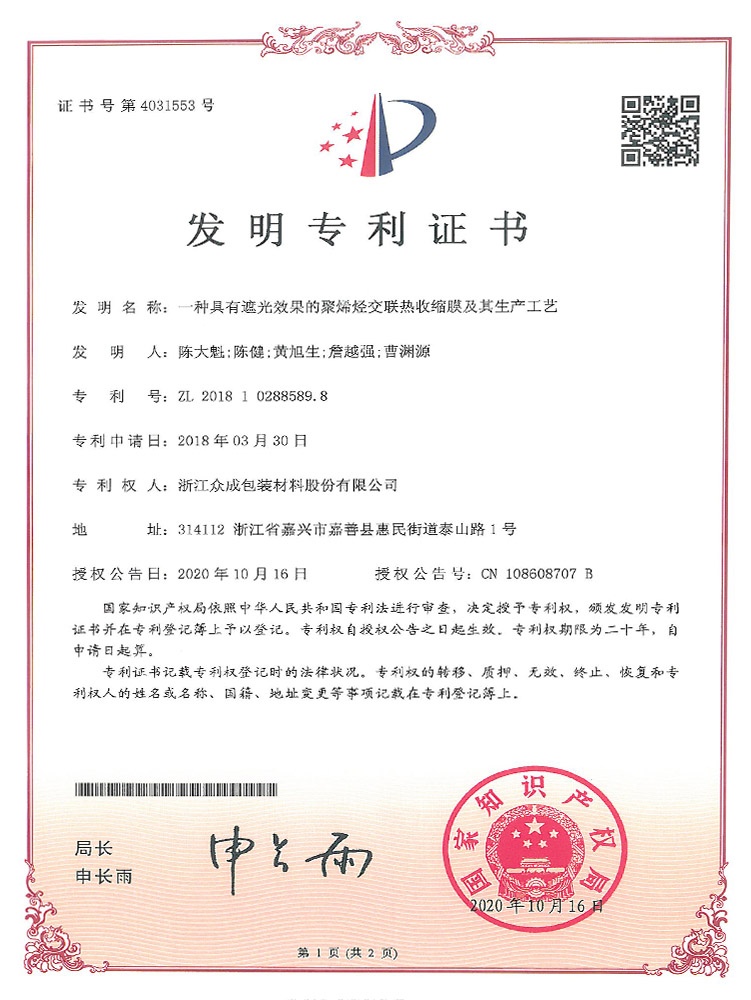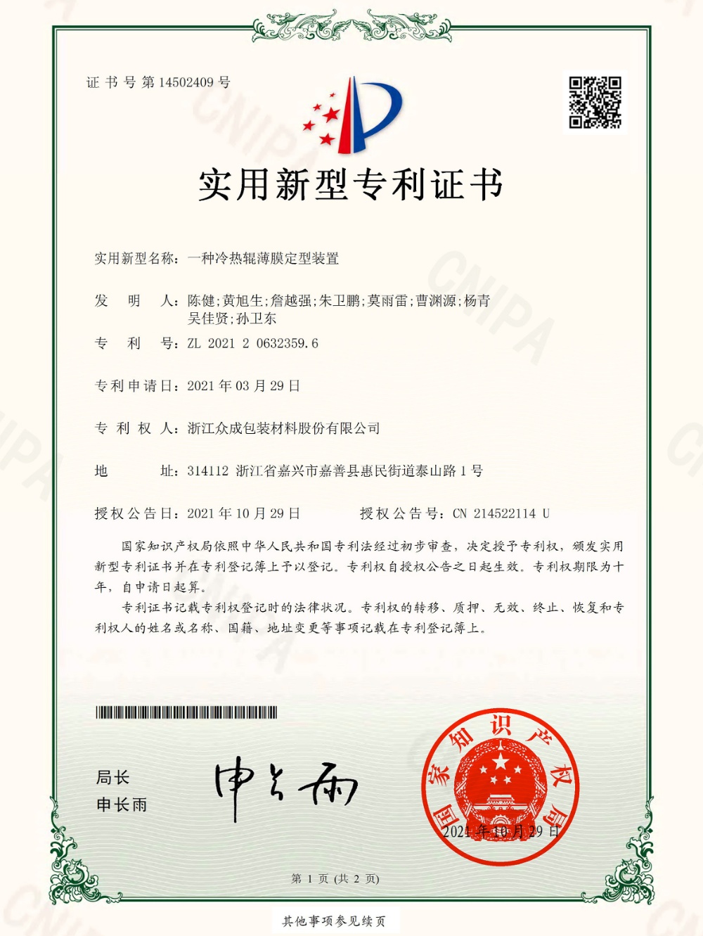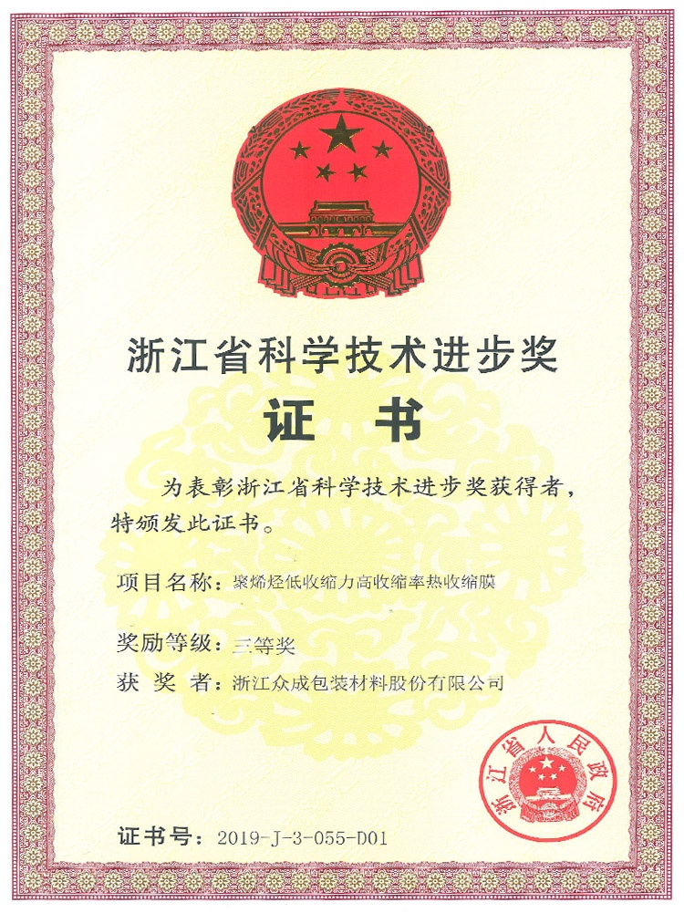 已获得浙江省绿色企业、浙江省转型升级引领示范企业等荣誉。主营产品POF热收缩膜是一种新型的绿色环保型包装材料,已逐步替代市面上有毒有害的PVC热收缩膜,符合低碳减量绿色环保的包装理念。公司通过技术迭代实现了绿色节能生产,积极布局新产品,已研发出超薄POF热收缩膜、符合欧盟标准的PCR聚烯烃热收缩膜,同时致力于可降解薄膜的持续研发,积极参与国家的“碳达峰与碳中和”目标。